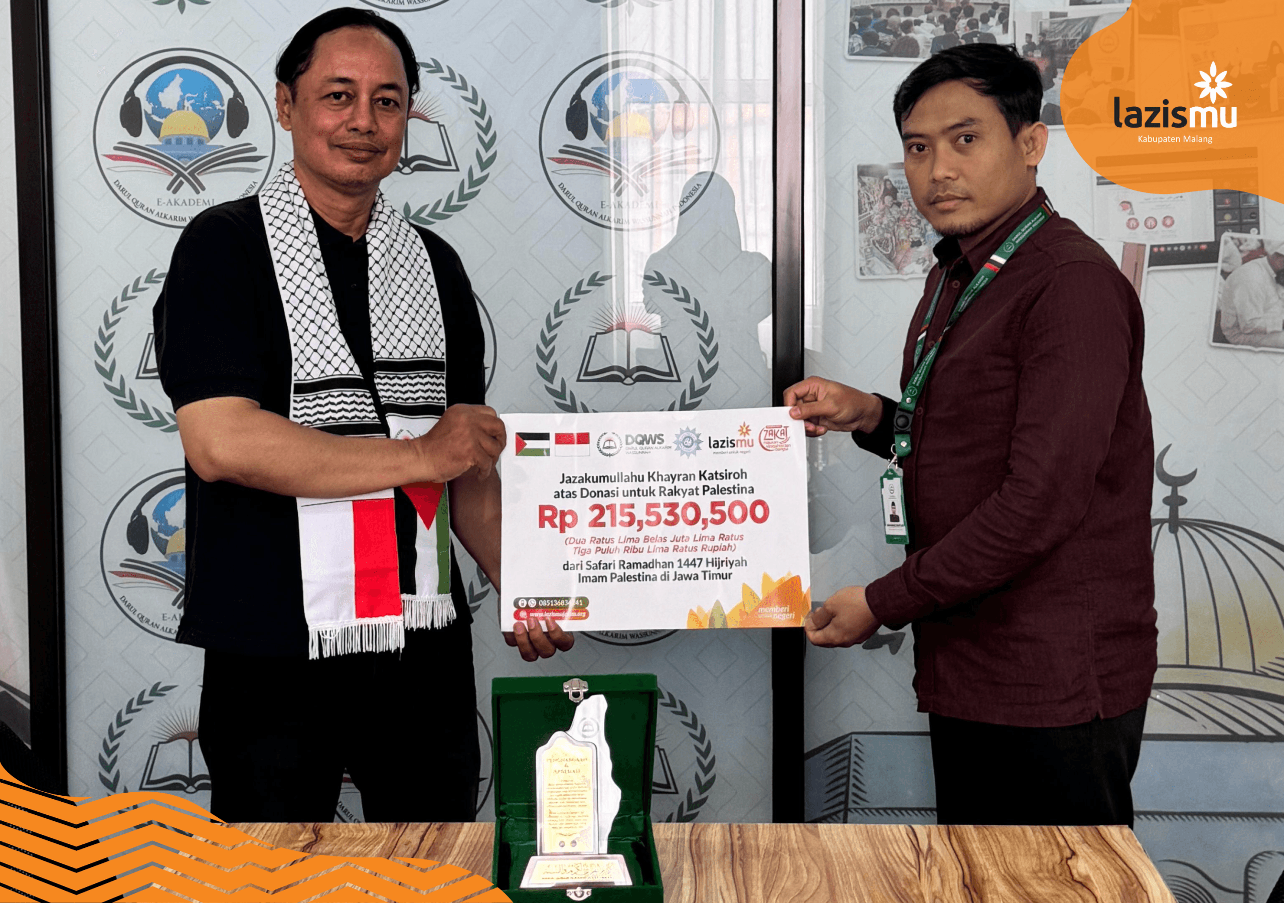 Komitmen LAZISMU Jawa Timur dalam mendukung kemanusiaan untuk warga Palestina kembali diwujudkan secara nyata. Dana hasil penggalangan donasi dari program Safari Ramadan LAZISMU Jatim 1447 H resmi disalurkan kepada Palestina melalui Yayasan DQWS (Darul Quran Alkarim Wassunnah), dalam sebuah seremoni penyerahan yang berlangsung di kantor DQWS, Golden Boulevard, BSD, Tangerang Selatan, Banten.